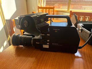 Cámara Sony grabadora de video hi, con todo el equipamiento de conexión eléctrica y de batería, cargador de batería y antorcha para iluminación con cargador de pilas recargables, 4 cintas y bolsa de transporte. Se ha usado poco y está bien conservado.