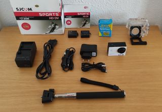 Se vende cámara de acción deportiva SJCAM SJ4000 (estilo gopro) con conectividad wifi junto con varios accesorios. Ideal para capturar tus aventuras. Incluye tarjeta micro sd 32 GB Sandisk Ultra. - Modelo sj4000 wifi - Resolución: 12 MP - Sumergible hasta 30 m. - Incluye accesorios: - Cargador cámara + cable USB - Cargador de baterías y 3 baterías. - Duración baterías grabando entre 60 y 70 min - Cargador mechero coche. - Palo selfie extensible. - Carcasa sumergible y 2 tapas de carcasa de repuesto. - Soporte para manillar bicicleta. - 2 parches adhesivos. - Cable metálico, varias correas y distintos accesorios de anclajes.
