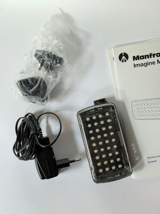 Faretto LED Manfrotto ricaricabile, dimmerabile, ideale per foto e video. - Design compatto e portatile. - Alimentazione tramite batteria ricaricabile. - Adatto per diverse applicazioni fotografiche e video. Con scatola e caricatore.
