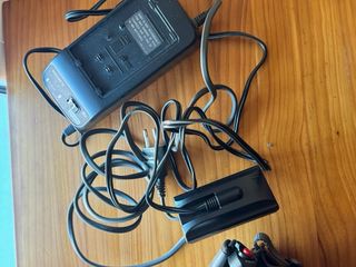 Cámara de video, con cargador, 4 baterías, foco de luz con fuente de alimentación, trípode, bolsa de transporte y folleto original.