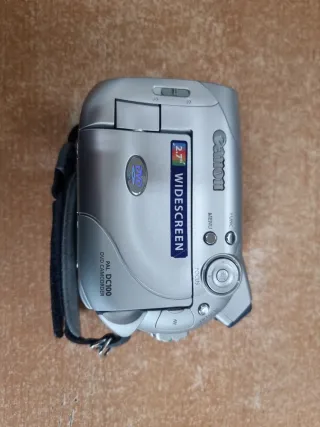 Cámara de vídeo digital Canon PAL DC100. - Pantalla Widescreen de 2.7 pulgadas. - Graba en formato DVD. - Diseño plateado.