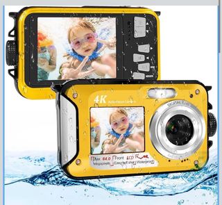 Cámara digital acuática con capacidad de 64 megapíxeles y grabación 4K. Ideal para capturar momentos bajo el agua o en condiciones de humedad. - Resolución máxima de 64 MP. - Grabación de video 4K. - Pantalla LCD frontal. - Función de selfie fácil. - Resistente al agua.