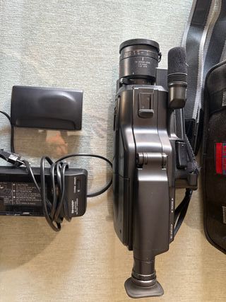 Ni se sabe si funciona Videocámara Sharp Zoom 8 en color negro y gris. Un modelo clásico para tus grabaciones. No se hace envíos recoger en Badajoz - Zoom óptico 8x. - Pantalla LCD. - Control de balance de blancos. - Shutter de alta velocidad 1/10000s. - Incluye estuche.