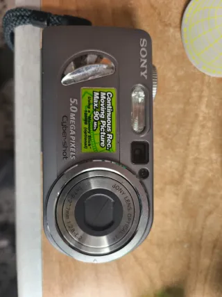 Cámara digital compacta Sony Cyber-shot con 5.0 megapíxeles. Con cargador y funda - Grabación de vídeo Moving Picture hasta 90 minutos. - Compatible con Memory Stick de hasta 128MB (opcional). - Zoom óptico 3x. - Lente Sony Optical.