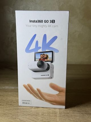 Cámara compacta Insta360 GO 3S con resolución 4K. - Diseño pequeño y potente. - Edición estándar. - Incluye 64GB de almacenamiento.