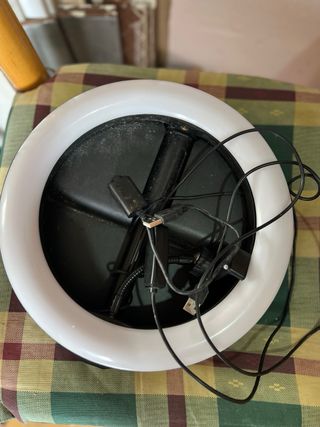 (No le hagan caso a la marca) Aro de luz LED circular, ideal para fotografía o video. Se conecta mediante USB. - Diámetro aproximado: [insertar diámetro si se conoce] - Color de la luz: Blanco - Conexión: USB - Incluye cable de alimentación.