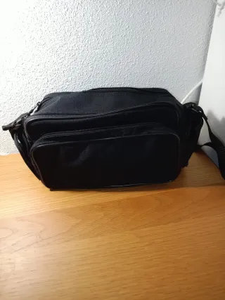 Bolsa negra para cámara fotográfica, o de vídeo, ideal para proteger tu equipo. - Material resistente e impermeable. - Múltiples bolsillos - Con velcros interiores. - Correa ajustable para el hombro.