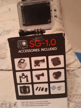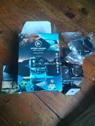 Cámara deportiva compacta con tecnología de compresión H.264 para bajo almacenamiento. - Resolución 1080P. - Conectividad WiFi. - Ideal para deportes y actividades al aire libre. Precio original: 80€ Regalo de reyes, no se ha usado. Solo abierto la caja para sacar las fotod