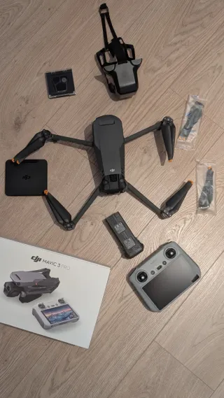 Dron profesional DJI Mavic 3 Pro en color gris. Vendo DJI Mavic 3 Pro, uno de los mejores drones del mercado, ideal para fotografía y vídeo profesional, creadores de contenido y vuelos cinematográficos. Cámara principal Hasselblad 4/3 CMOS – 20 MP Vídeo hasta 5.1K Teleobjetivo medio 70 mm – 48 MP Teleobjetivo largo 166 mm – 12 MP Zoom óptico de alta calidad sin perder detalle Grabación en 5.1K / 4K Perfiles profesionales: D-Log, D-Log M y HLG Incluye: Mando de control Batería Filtros ND 8, 16, 32 y 64. Filtro ProMist 1/4 2 hélices de recambio Caja original Accesorios originales No incluye: Cargador