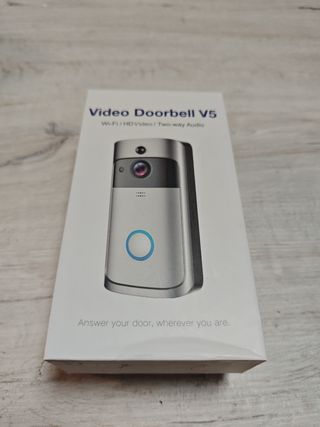 timbre con cámara Video Doorbell V5 en perfecto estado. Es de color plata y negro, con un diseño elegante y moderno. - Video HD - Audio de dos vías - Conexión WiFi