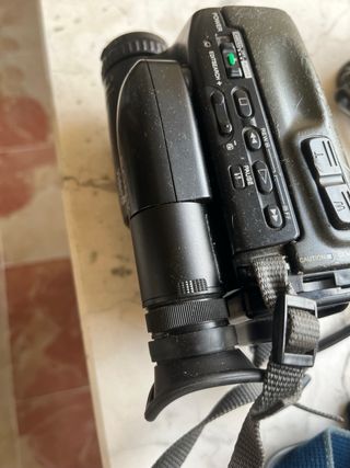 Videocámara Sharp en tonos negro y gris. Un equipo versátil para capturar tus momentos. En principio se vende sin funcionar aún que se ilumina el piloto y hace ruido. Pero no consigo hacerla funcionar ni que saque imagen. Compartimento de cinta continuamente abierto Cargador y 1 batería - Zoom óptico 12x. - Lente con anillo de enfoque. - Asa superior para mejor agarre.