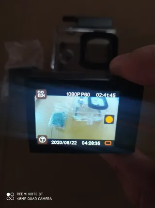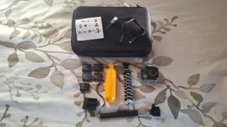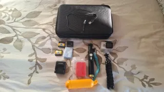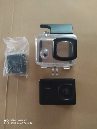 Camara de accion estilo go pro. Graba en 4k. Se vende por no usarse. La doy sin memoria sd pero con cuatro baterias nuevas junto con su cargador y algunos accesorios. Podria incluir algún accesorio o alguna pieza que falte. Cuando la probé me dió algun error de bateria, pero imagino que será por haber estado 3 o 4 años sin usarse.
