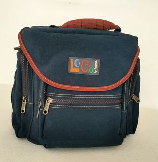Bolsa acolchada marca Hama, modelo Logo, para cámara de fotografía o de vídeo. Convertible fácilmente en bandolera o mochila. Las cintas se esconden en un bolsillo trasero. Muy buen estado. Dispone de 4 bolsillos exteriores y 1 bolsillo interior para baterías, filtros y cargadores. Compartimento principal con 2 separadores móviles y acolchados para guardar cámara, objetivos y flash. Las cremalleras funcionan perfectamente.