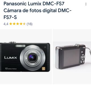 Cámara digital Panasonic Lumix DMC-FS7. - Modelo FS7-S. - Resolución de 10 megapíxeles. - Lente Leica DC VARIO-ELMARIT. Solo hay que cambiar la tapa que cierra la batería,pero funciona perfectamente.