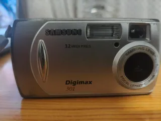 Cámara digital Samsung Digimax 301 en color plata. Compacta y fácil de usar. - Resolución de 3.2 megapíxeles. - Zoom óptico. - Flash integrado.