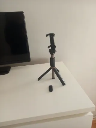 Trípode extensible con soporte para móvil, ideal para fotografía y vídeo. - Diseño ligero y portátil. - Altura ajustable. - Base estable con patas antideslizantes. - Incluye mando a distancia.