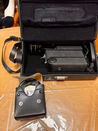 La Zeiss Ikon Movikon 8 es una cámara de cine manual y mecánica de 8 mm de la década de 1950, funcionando correctamente. Conocida por su construcción robusta y su diseño horizontal único. Utiliza película de 8 mm doble y es operada mediante un mecanismo de cuerda. Equipada con una lente Movitar 1:1.9 f=10 mm, con anillo de diafragma y enfoque manual desde 0,2 m hasta infinito, permite filmar a varias velocidades: 16, 24, 32 o 48 (fps), además de una opción para tomas de un solo fotograma . camara analogica cine video 8mm zeiss ikon canon minolta yashica bell and howell sankyo Kodak agfa vintage coleccion Nikon olympus fujica