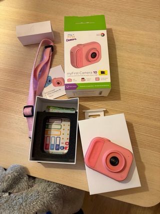 Cámara digital myFirst Camera 10 en color rosa, diseñada para capturar recuerdos desde la perspectiva de los niños. - Cámara de 5MP. - Graba fotos y vídeos. - Incluye tarjeta de memoria. - Grabación de vídeo Full HD.