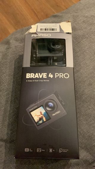 Cámara de acción AKASO Brave 4 Pro en color negro. Ideal para capturar tus aventuras. - Grabación de video 4K. - Captura de fotos. - Estabilización electrónica de imagen (EIS). - Doble pantalla a color. - Muchos accesorios, carcasa, soportes, protectores, batería. - Se vende nueva a estrenar esta tal cual en las fotos ni se ha sacado de su caja ni abierto los accesorios, todo en sus plásticos.