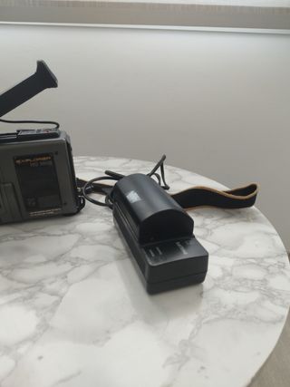 Cámara de vídeo vintage de la marca Philips. - Modelo Explorer HD VHS. - Color gris. La batería carga pero no enciende.Funciona con el cable de alimentación. De regalo 2 bolsas de transporte