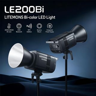 NUEVO Y PRECINTADO Godox LE200Bi Luz LED de Vídeo con Soporte Bowens, 2800K-6500K Bi-Color, CRI 98, TLCI 98, DMX, Ventilador Silencioso para Streaming, Entrevistas, Cine oble temperatura de color (2800 K – 6500 K) y 11 efectos FX: Cambie flexiblemente entre luz cálida y fría con control suave de CCT. Incluye 11 modos de efectos dinámicos (por ejemplo, parpadeo de TV, relámpagos, luz de vela) para escenarios creativos. Múltiples opciones de control: DMX, CRMX y Bluetooth: Cuenta con control DMX y control inalámbrico CRMX opcional mediante TimoLink RX, además de conectividad Bluetooth NFC CHD
