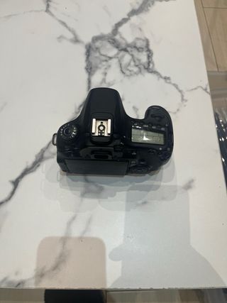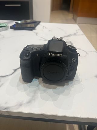 Cámara réflex digital Canon EOS 60D en color negro. - Cuerpo de cámara. - Tapa del objetivo.