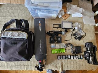 Equipo completo ideal para cine digital y entrevistas. Incluye videocámara Sony NEX-VG10 con sensor APS-C y objetivo Sony E-mount. No vendo elementos por separado: el precio es por todo el lote Contenido: Audio: Micro inalámbrico BOYA BY-WM5 (TX/RX) y micro de mano. Luz: Panel LED con difusor. Energía: 9 baterías, cargador y pack de pilas recargables EBL. Soporte: Trípode K&F Concept y mochila técnica. Extras: SD 64GB y cableado. Todo revisado y funcional. ¡Listo para grabar! #SonyVG10 #VideoPro #Boya #Filmmaking #K&FConcept #OfertaVideo