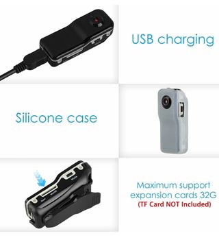 Mini cámara de vídeo SQ11 con grabación Full HD. - Resolución de vídeo: 1920x1080p. - Formato de vídeo: AVI. - Soporta tarjetas Micro SD de hasta 32GB (no incluida). - Batería recargable de litio.