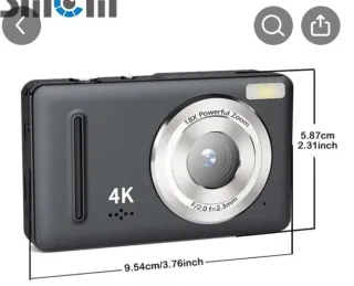 Cámara digital SMCM con resolución 4K Ultra HD y sensor de 64MP. Captura imágenes y videos con gran detalle. - Zoom potente de 18X. - Apertura de lente F/2.0. - Dimensiones: 9.54cm x 5.87cm.
