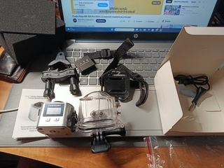 Cámara de acción HD DV, ideal para deportes acuáticos y actividades al aire libre. Resistente al agua hasta 30 metros. - Incluye varios accesorios de montaje. - Cable de carga USB. Mantiene caja original, nunca se ha usado.