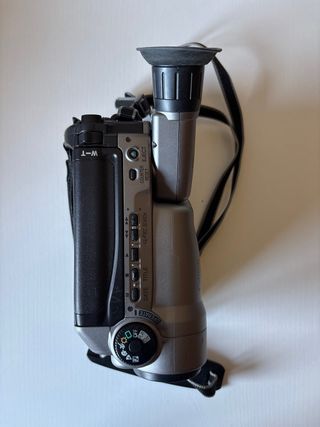 Cámara de vídeo Sony Handycam en color gris, un modelo clásico para tus grabaciones. - Diseño compacto y ligero. - Visor electrónico. - Correa de mano ajustable.