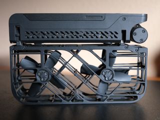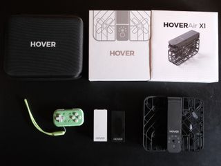 Dron Hover Air X1 con cámara autopilotada. Incluye dron, 3 baterías, estuche de transporte, mando para control manual y caja original. Despegua y aterriza desde la palma de la mano. Dron plegable que cabe en cualquier bolsillo. 5 modos de vuelo automático. 125 g de peso. Aplicación mòvil para su configuración, y la descarga de fotos y vídeos. Vídeos con 2.7k Ultra HD. Velocidad de seguimiento hasta 25 kph. 2 de las baterías presentan un ligero abultamiento, que se hace más visible en verano. Su autonomía es algo menor a la batería más nueva.