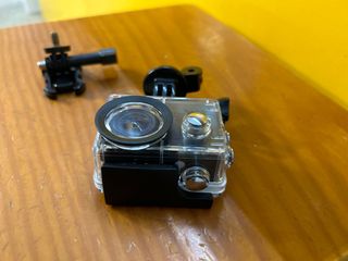 Cámara de acción Wiseup con carcasa resistente. Y todos los accesorios, menos la targeta SD y el cable USB (q es el viejo). Está intacta, hasta viene con los plásticos protectores, la compré hace un montón y sigue funcionando. Conserva la caja de plástico donde poner las cosas pero no la de cubrir - Resolución HD 1080P. - Color amarillo y negro.