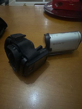 Cámara de acción Sony con carcasa (la carcasa tiene una pequeña averia). - Color blanco y negro. - Incluye accesorio de muñeca.