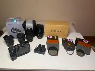 Cámara de vídeo profesional en color negro. - Incluye bolsa de transporte. - Lentes canon 18-55mm y 85mm. - Cargador y baterías. - Accesorios adicionales. -Tilta para accesorios y protección.