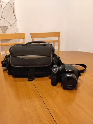 Cámara digital Sony DSC - H300 de 20.1 mega píxeles en color negro, acompañada de su bolso de transporte. Estado como nueva. - Bolso acolchado para proteger el equipo. - Correa para colgar la cámara.