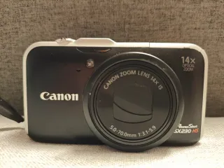 Cámara digital Canon PowerShot SX230 HS en color negro. Incluye funda y dos baterías adcionles. - 12,1 megapíxeles - Zoom óptico 14X - Procesador DIGIC 4 - GPS integrado - Grabación vídeo FullHD 24 fps