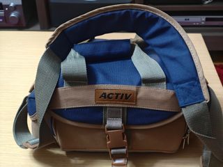 Bolsa Activ para cámaras/videocámaras de material tipo cordura. Medidas : 33cm L x 17cm An x 19cm Al. Con asa de mano y correa de hombro, múltiples bolsillos frontales, laterales e interiores como se ven en las imágenes y dos organizadores de velcro movibles. Está completamente nueva. Cremalleras también en perfecto estado. Ver ejemplo de tamaño, con cámara eos rp en su interior y adaptador en bolsillo lateral (no incluidos ), útil para cargadores, objetivos de pequeño tamaño, etc. Precio no negociable