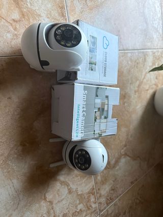 Cámara de vigilancia de seguridad WiFi 2.4G. Nueva sin estrenar. - Control total mediante App en el móvil. - Rotación horizontal y vertical motorizada. - Reconocimiento de mascotas. - Seguimiento automático de intrusos. - Comunicación por WIFI. - Dispone de comunicacion sonora bidireccional. - Infrarrojo de visión nocturna. - Alarmas y notificaciones seleccionables. - Incluye cámara, adaptador de corriente y tornillos de montaje. - Manual de usuario incluido.