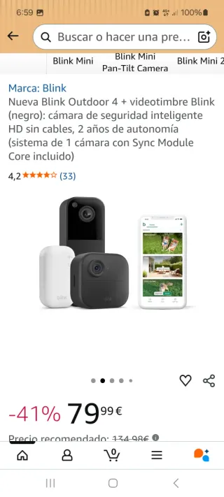 Sistema de seguridad inteligente Blink Outdoor 4 con videotimbre. Precio por unidad tengo 2 iguales. - 2 años de garantia amazon. - Nuevo sin abrir. - Cámara de seguridad HD sin cables. - Dos años de autonomía. - Incluye Sync Module Core.