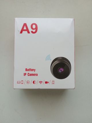 Cámara de vigilancia A9. Formato súper reducido en calidad HD. Se conecta con tus dispositivos a través de Wifi. 4 cm de ancho x 6,5 cm de alto. Ideal para vigilar a niños/bebés, fácil de instalar.