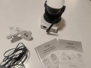 Cámara de videovigilancia Sricam para interiores. - Modelo HD IP Camera. - Incluye manual de usuario. - Soporte de montaje. Nosotros la usábamos como vigilabebes