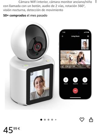 NUEVA SIN ESTRENAR. IDEAL PARA REGALO. Cámara de vigilancia WiFi para interiores, ideal para monitorizar a ancianos o niños. Permite comunicación bidireccional y tiene un diseño moderno. - Audio de 2 vías. - Rotación 360°. - Visión nocturna. - Detección de movimiento.