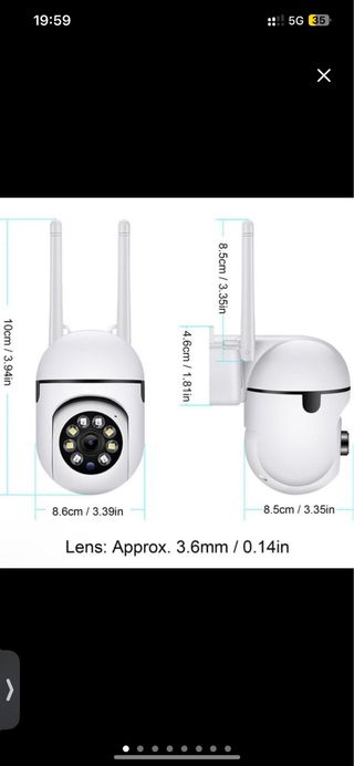NUEVA SIN ESTRENAR IDEAL PARA REGALO. Cámara de vigilancia con diseño moderno y compacto. - Altura: 10cm / 3.94in - Ancho: 8.6cm / 3.39in - Profundidad: 8.5cm / 3.35in - Lente: Aprox. 3.6mm / 0.14in