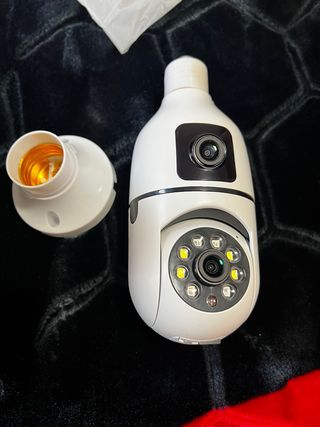 NUEVA SIN ESTRENAR. PRECINTADA SIN ABRIR. Cámara de seguridad con diseño de bombilla, ofrece una visión panorámica de 360 grados. - Visión nocturna a todo color. - Audio bidireccional. - Lente ojo de pez panorámico. - Soporte para hotspot. - Almacenamiento en tarjeta TF.