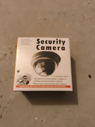 Vendo cámara de seguridad falsa. Es ideal para disuadir a posibles intrusos. - Se entrega con tornillos para su instalación. - Diseño realista y compacto. - Viene con una pegatina de advertencia.