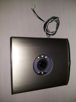 Cámara de video portero de la marca Auta. Diseño moderno y elegante. - Acabado metálico. - Lente circular con anillo de luces LED.