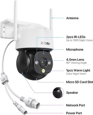 ZOSI C290 2,5K 4MP Cámara de Vigilancia WiFi Exterior con 360° Pan y 140° Tilt, Seguimiento Automático, Detección de Persona y Vehículo, Visión Nocturna en Color, Alarma Sonora y Luminosa, Audio
