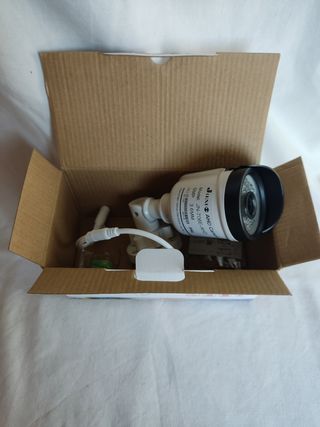 Cámara de seguridad JINO ART de 5MP y lente de 3.6 mm. Se encuentra en su caja original y no se ha usado. - Resolución de 5MP. - Lente de 3.6 mm. - Incluye soporte de montaje.