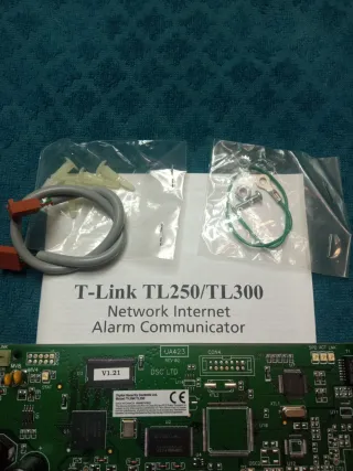 Módulo de comunicación de red para alarmas. - Modelo T-Link TL250/TL300. - Diseñado para comunicación por Internet. - Incluye manual de instalación.